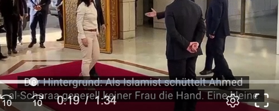 Der hintergrund : als Islamist schüttelt Achmet al-Schaara gnerell keiner Frau die hand