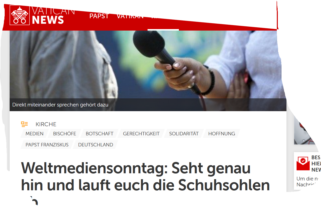 in bezug auf Pressefreiheit hält sich der Papst zur Zeit etwas zurück. Erkann ja auch nicht alle alleine machen. am 15 märz 2024 wurde der der Reporter der Nachrichtenagentur Reuther im Libanon ermordet. Also im Ausland . Im Gazastreifen werden natürlich auch Journalisten ermordet. Soweit ich mich erinnere zählt Al jazeera ungefähr 50. Hier habe ich noch ein Loch in meiner Berichtserstattung. Aus heutigr Sicht erschheint die meinug des Vatikans zum thema etwas naiv